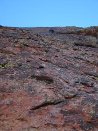 When we were on the 2nd pitch, a few climbers walked by and then disappeared from my view. I could hear them all day, but couldn’t make out where the voices came from. After we got down Crimson Chrysalis, they came back– they had just done a 7 pitch 5.11+ route called Cloud Tower. Was that impressive. Well, they didn’t stop there… they (3 guys) racked up, and started simul-climbing Crimson Chrysalis at 3:30pm! Allen and I hung out at the base for a little while, and after we hiked down the ramp when we looked back, the three guys, 100 feet apart, were already almost half way up. It was an amazing scene.