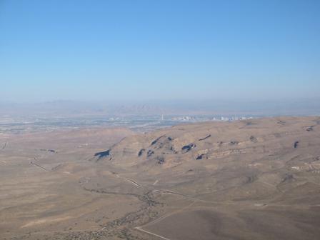 We arrived at Red Rock Visitor Center around noon. After parking the car at the first pullout, we racked up and went to Dogg Wall, where we did a couple of fun sport routes (Cat Walk 5.10a and It’s a Bitch 5.10b). It was overcast and the rock was so cold that I couldn’t feel my fingers. On our way to the camp site, the engine overheated twice. I was scared, but Allen calmly added water into the radiator and continued driving. Thank god that the campground was not far from where we were, so we soon pulled in to group camp site E, which had been reserved by Rock Rendezvous starting on Tuesday. We had the whole group site to ourselves that night. The powerful light beam shooting straight into the sky from the Luxor Pyramid could be clearly seen from the campgound.
