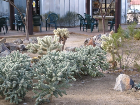 This is a garden of cactuses in front of a store in the town right outside of the park. I have to say it's the most unfriendly garden I've seen -- you can't even get close to the plants, touch them, and smell them.