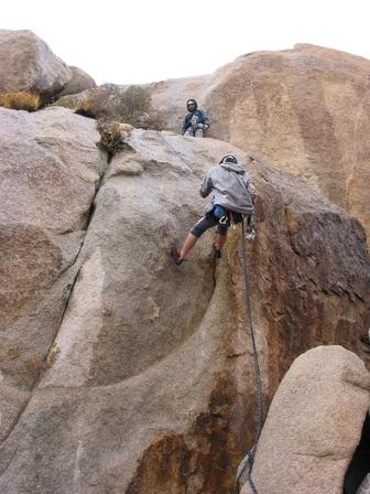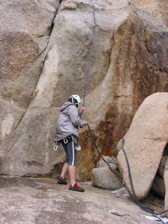 Rappelling down from the rock. See the water mark on the rock? It hailed right after I got to the top (the platform above David). Boy! Weren't I happy to have my rain coat with me!